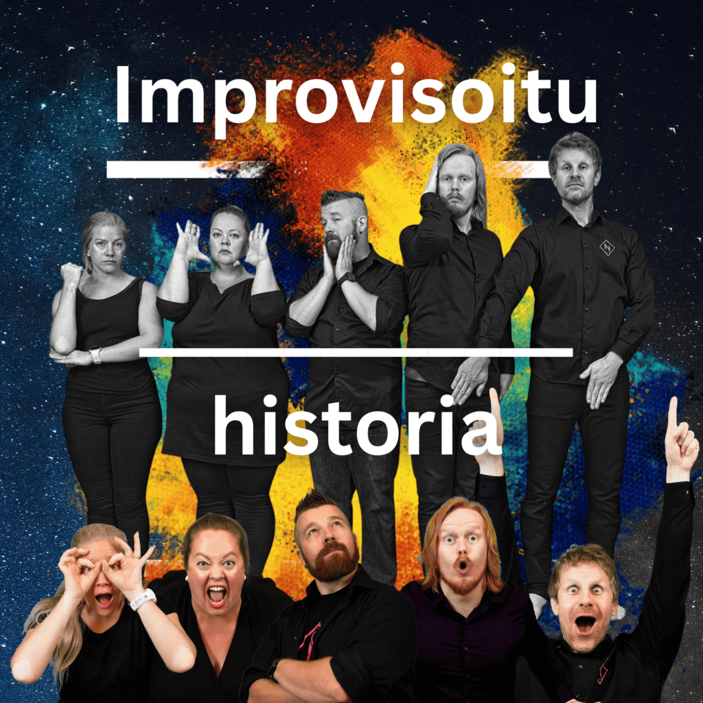 Miten käsitellä historiaa improvisaatioteatterin keinoin? Inspiroidumme esityksessä sekä paikkakunnalla oikeasti tapahtuneista historiallisista tapahtumista, minkä lisäksi yleisö saa antaa oman mausteensa kohtausten ja laulujen kulkuun. Luvassa täysin myllättyä historiaa, nykypäivää uudelta kantilta sekä monenlaisia tulevaisuudenkuvia! Improvisoitua historiaa on esitetty kotipaikkakunnallamme Forssassa ja sitä on lisäksi tilattu mm. Raisioon ja Lappeenrantaan.